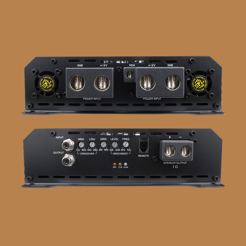 1-Kanal 1-Ohm stabiler SPL-Hochleistungsverstärker mit Class D Schaltung, integrierter Aktivweiche und Bass Boost